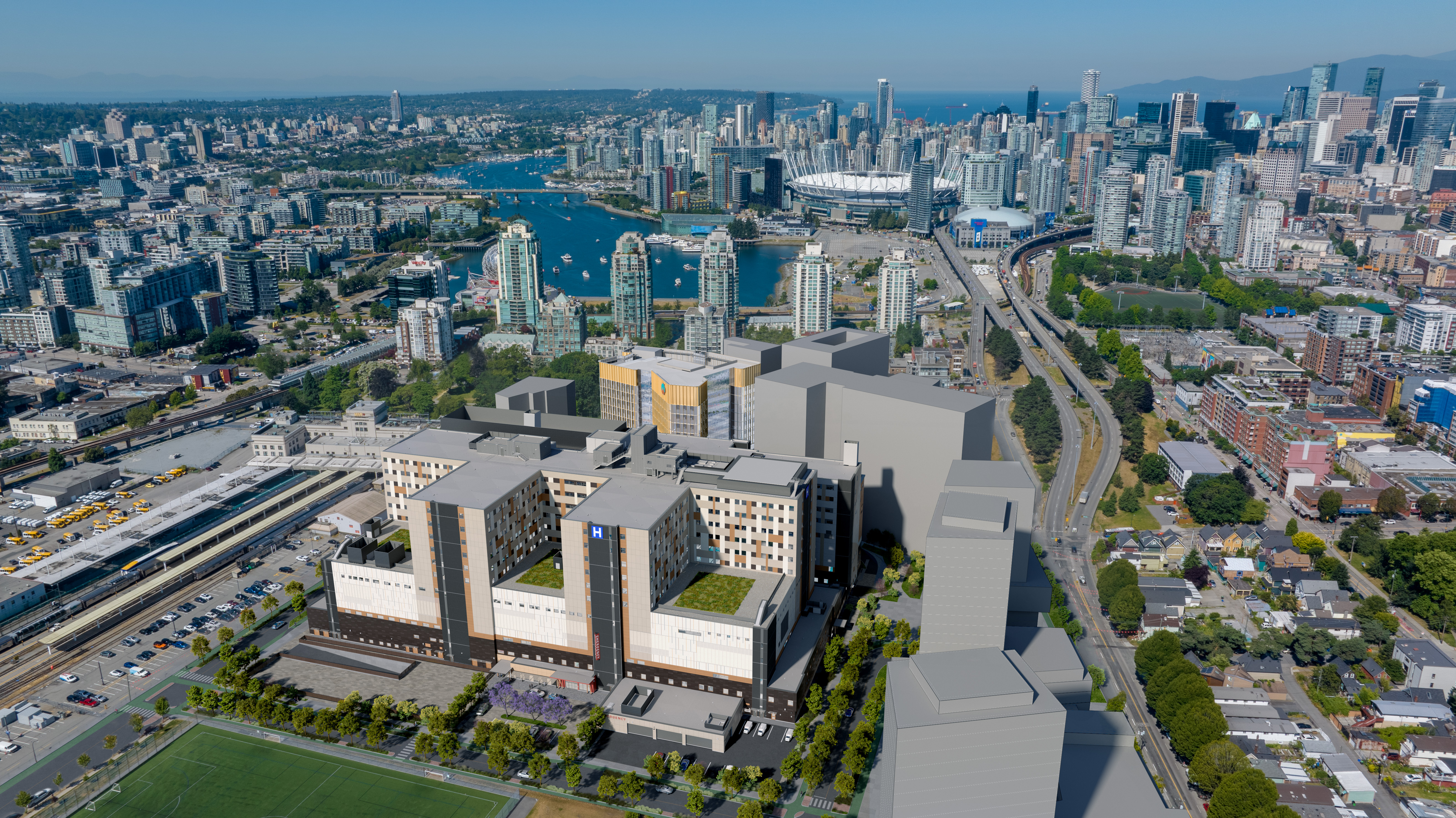 Media gallery Concept renderings of the Jim Pattison Medical Campus Breadcrumb Home Jim Pattison Medical Campus Copy link to this section Clinical Support and Research Centre (left) & new St. Paul's Hospital (right) See full size image Campus aerial See full size image Campus aerial - hospital & CSRC only See full size image Campus aerial See full size image Site plan See full size image New St. Paul's Hospital Copy link to this section New St. Paul's Hospital See full size image Main entrance See full size image Emergency entrance See full size image Entrance See full size image Atrium See full size image Emergency triage See full size image Inpatient room See full size image NICU patient room See full size image Operating room See full size image Healing corridor See full size image Clinical Support & Research Centre (CSRC) Copy link to this section CSRC See full size image Skybridge See full size image Videos Copy link to this section Construction Update (Spring 2025) Watch Staff visit new St. Paul's Hospital mock rooms Watch Flythrough of the new St. Paul's Hospital Watch Inside an Inpatient room at the new hospital Watch Inside Emergency Triage at the new hospital Watch BC landmarks inspire interior design of the new St. Paul's Hospital Watch What it takes to bring BC's largest hospital redevelopment to life Watch